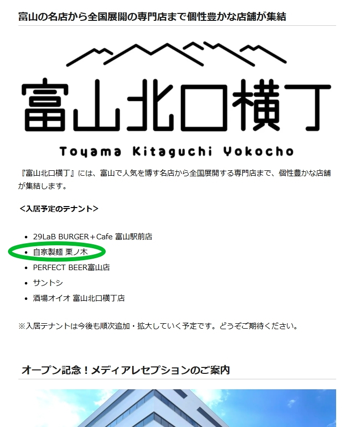 北口横丁出店辞退と富山店(2025/11/20更新)