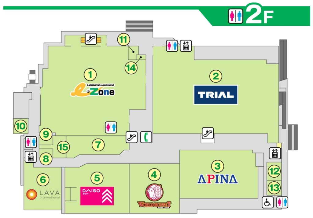 2階のテナント一覧です。(1階は屋内駐車場)